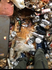 部屋中に捨てられているものといえば、主に、ビールの空き缶、コンビニ弁当のから、タバコの吸い殻などが山積み、そして小銭がいたるところに落ちていました。
